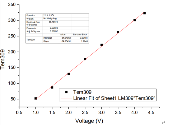 4. 温度与电压关系图中的温度是由红外热像仪测量的,数值仅供参考。